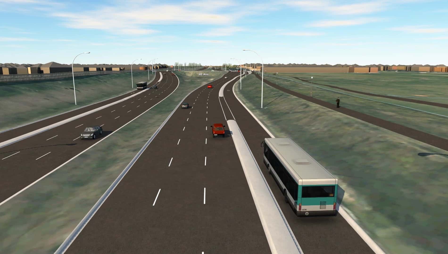 Originally envisioned as a freeway corridor with flyover connections to the adjacent residential connecting roadways and interchange connections at AHD and Whitemud, the project team determined that the objectives of the study could be achieved in a more cost-effective and timely manner through the implementation of an expressway concept. An eight-lane expressway concept plan was developed for the corridor and submitted to the City for approval in 2019. The eight-lane expressway includes three general purpose lanes as well as dedicated transit lanes both northbound and southbound though the entire corridor. This configuration meets or exceeds the required operational capacity through each segment of the corridor at an estimated cost savings of approximately 900 million dollars when compared to the original freeway concept.
