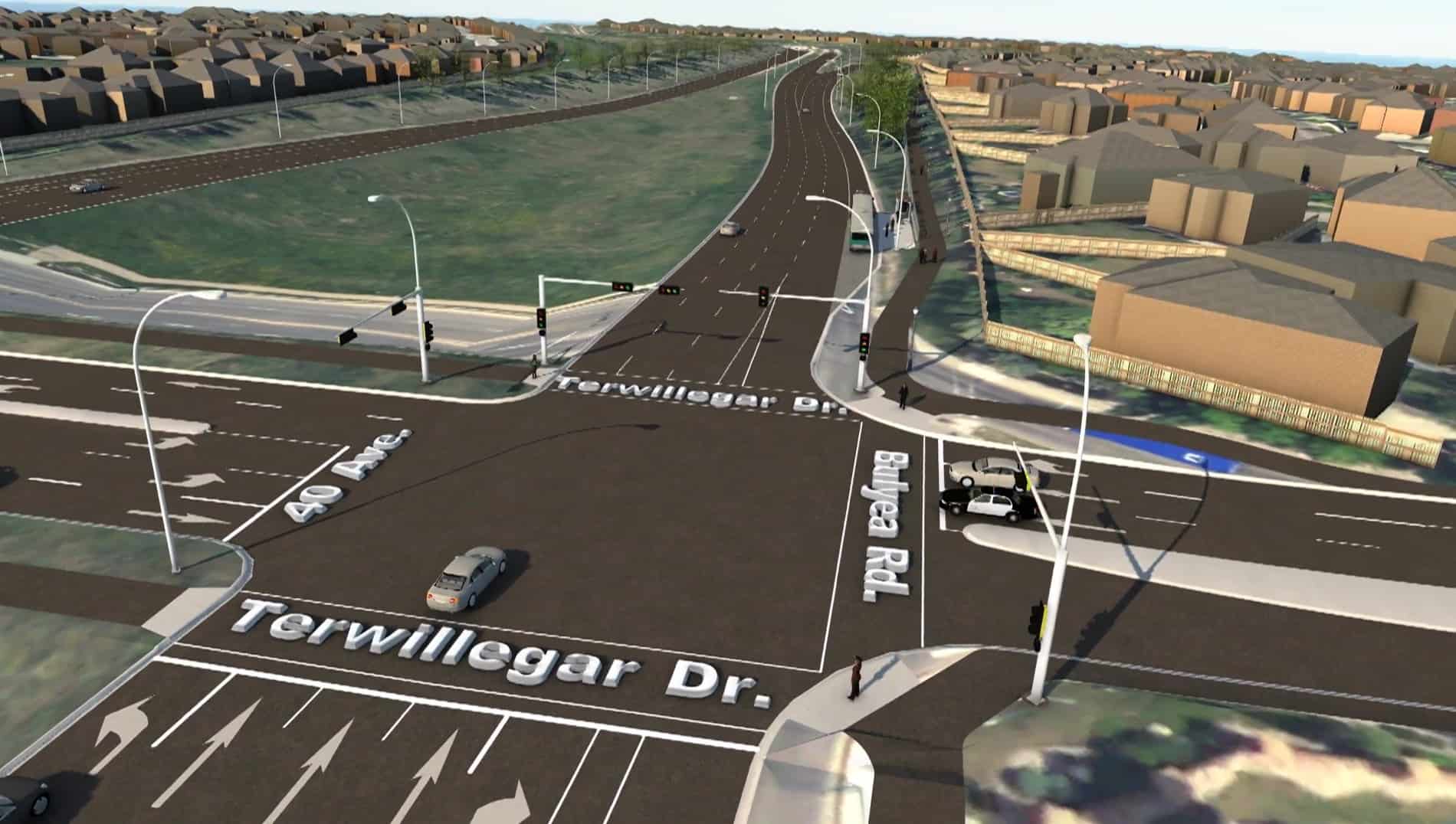 Al-Terra, in affiliation with ISL Engineering, was contracted by the City of Edmonton to complete a Concept Planning Study for Terwillegar Drive between Anthony Henday Drive (AHD) and Whitemud Drive. The primary objective for the project team was to develop a plan facilitating improved commute times in the study area, preserving or enhancing access to adjacent neighbourhoods, providing for enhanced transit accommodation on the corridor, and improving cyclist and pedestrian movement while staying within a prescribed budget.