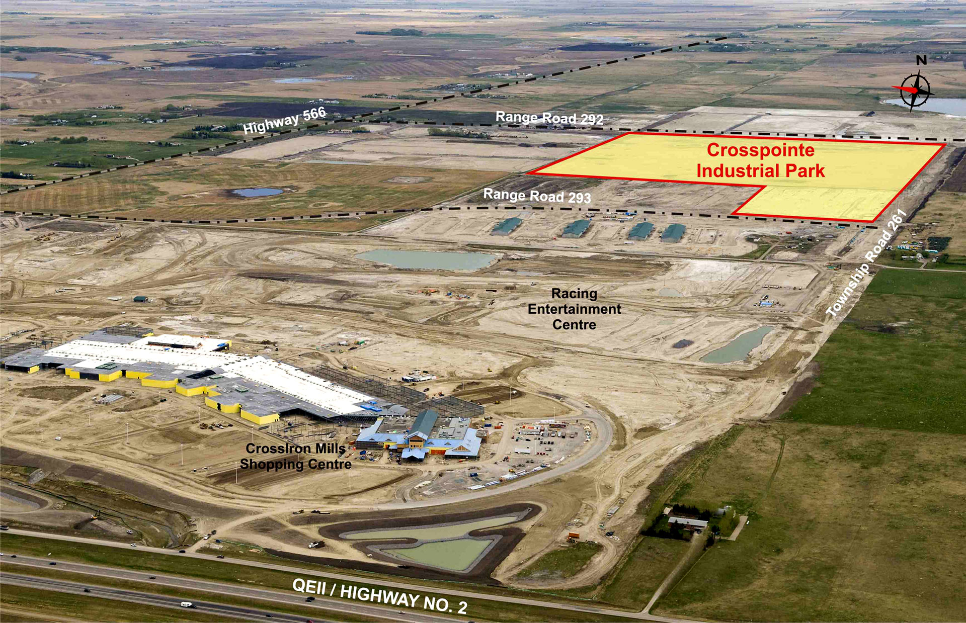 This 160 acre fully serviced industrial park development is located one mile north of the City of Calgary in Rocky View County’s evolving industrial and commercial zone in Balzac. The site is located near CrossIron Mills Mall and is a 10 minute drive from Calgary International Airport. Excellent access is available via the QE ll Highway, Deerfoot Trail and Stoney Trail.